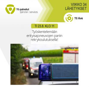 Ti 23.8.2022 klo 11:00 Työskentelemään erityisajoneuvojen pariin rekrykoulutuksella!