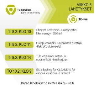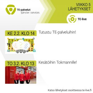 Ke 2.2.2022, klo 14:00 Tutustu TE-palveluihin!
