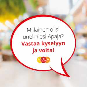 Kehitämme palveluitamme ja haluamme kuulla, millaisia kehitysideoita sinulla olisi Kauppakeskus Apajaa kohtaan. Osoitteessa https://my.surveypal.com/ApajaAsiakaskysely vastaamalla voit osallistua arvontaan neljän hengen illallisesta nepalilaiseen ravintola-Mandalaan (arvo 150 €, ei sisällä ... (Lue lisää)